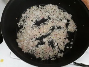 İç harcımız için zeytinyağını tavaya alıp soğanları pembeleşene kadar kavuruyoruz.