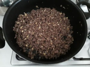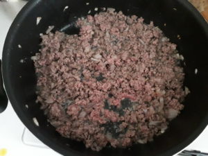 Üzerine kıymamızı katıyoruz ve karıştırıp kavuruyoruz.