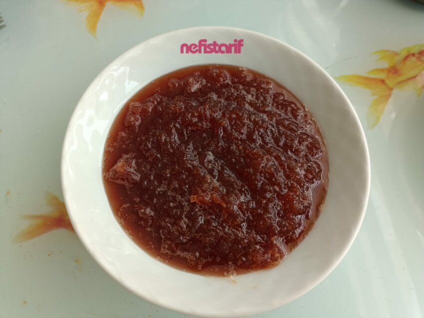 Yaklaşık 2 saat kadar ara ara tahta kaşıkla karıştırarak pişiriyoruz.